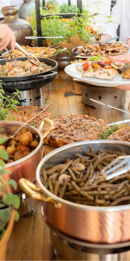 הקייטרינג שלנו יהפוך את האירוע שלכם לחוויה קולינרית ייחודית. אנו מספקים לווי קולינרי לכל אורך האירוע הכולל סידור מגשים על מזנון, ושירות הגשה. אתם, נשאר לכם רק לחגוג.